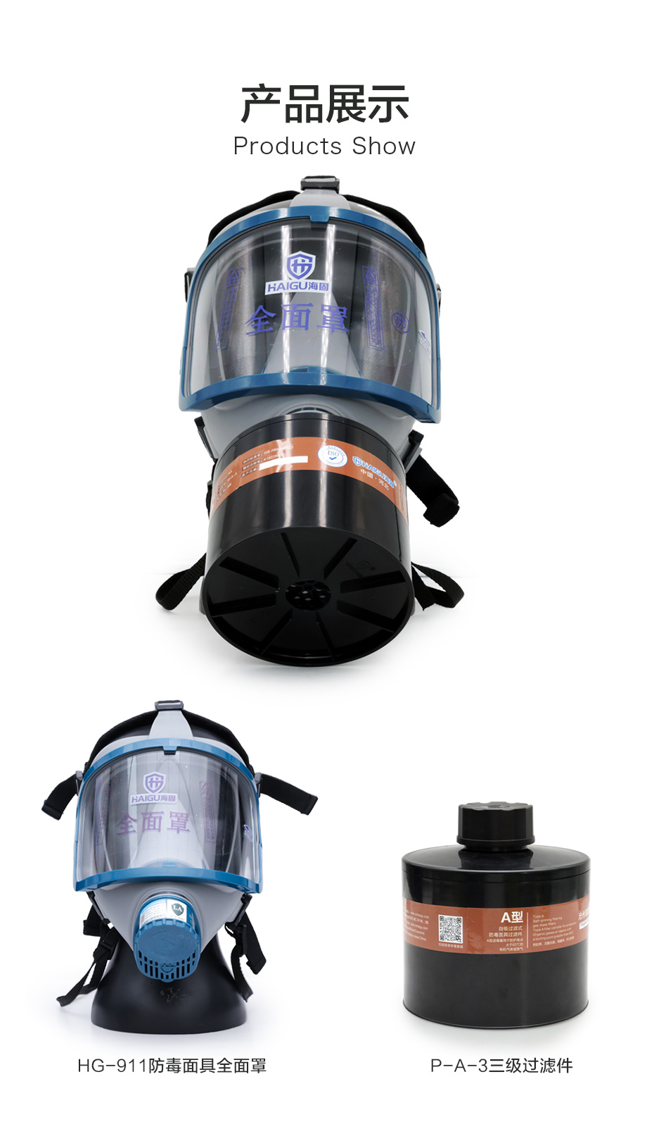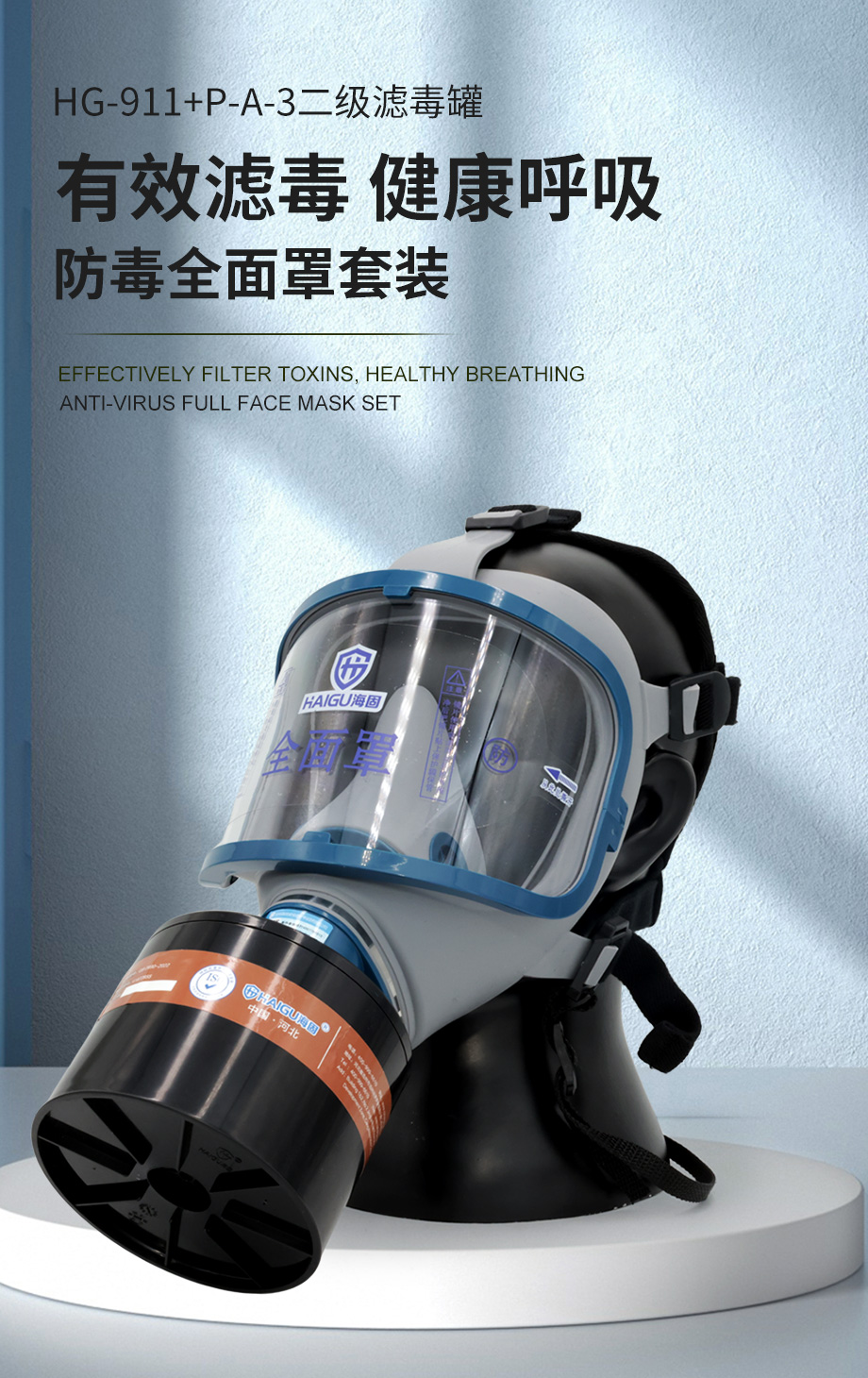 海固911全面罩+HG-ABS/P-A-3濾毒罐 活性炭防毒面具 甲醛 醇類(lèi)