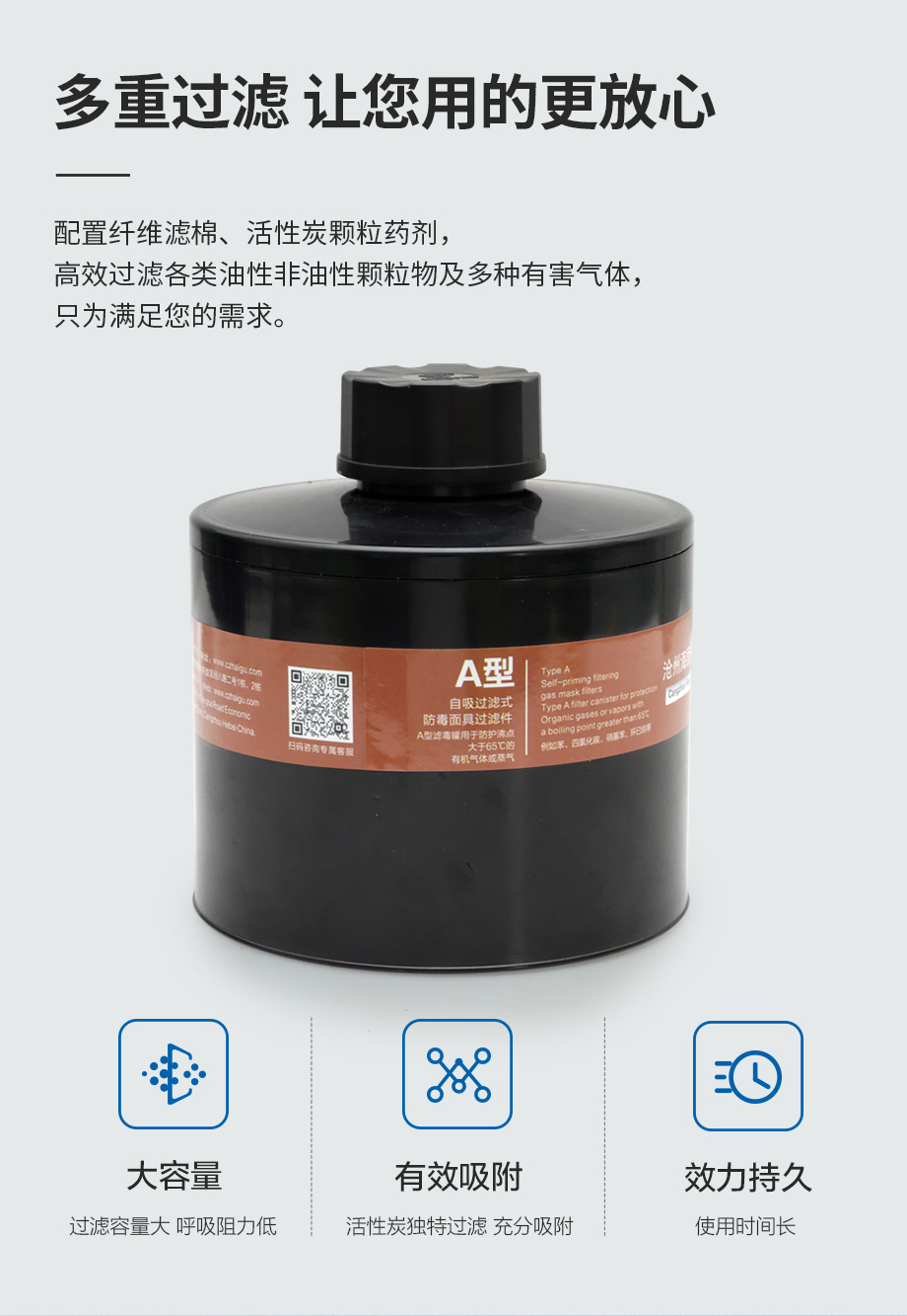 產(chǎn)品規(guī)格:寶藍(lán)灰硅膠/ABS濾毒罐