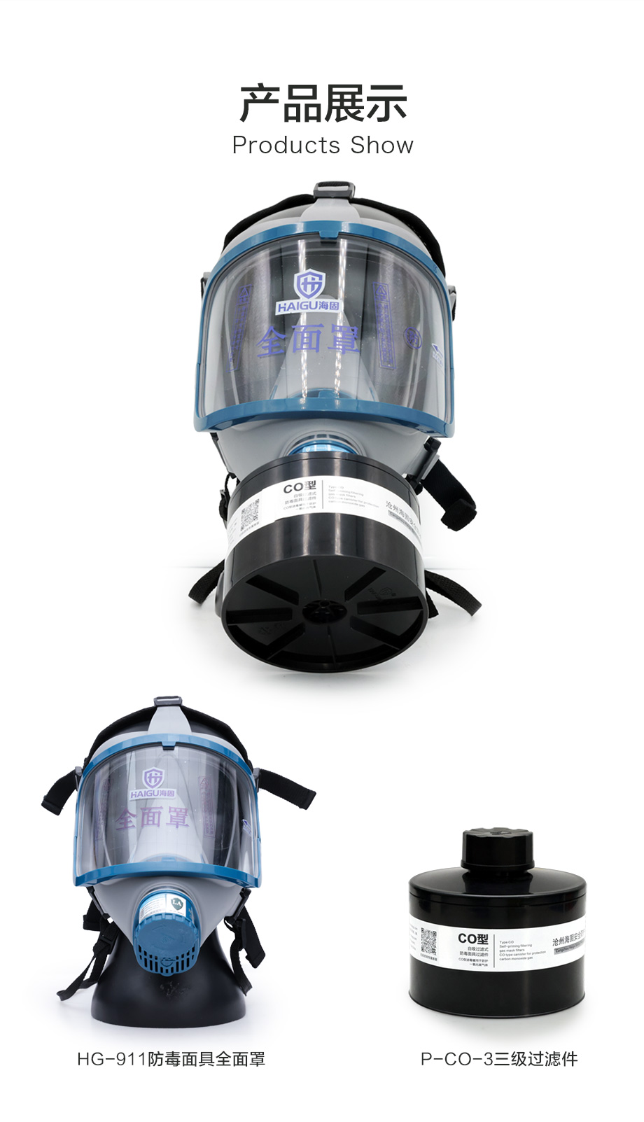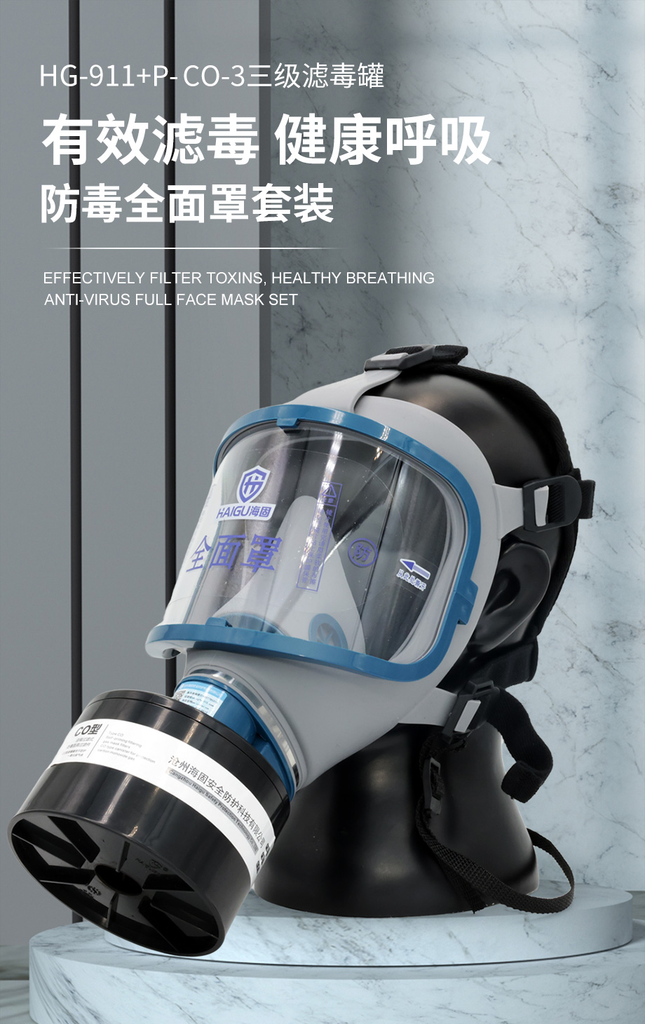 海固911全面罩+HG-ABS/P-CO-3濾毒罐 一氧化碳防毒面具