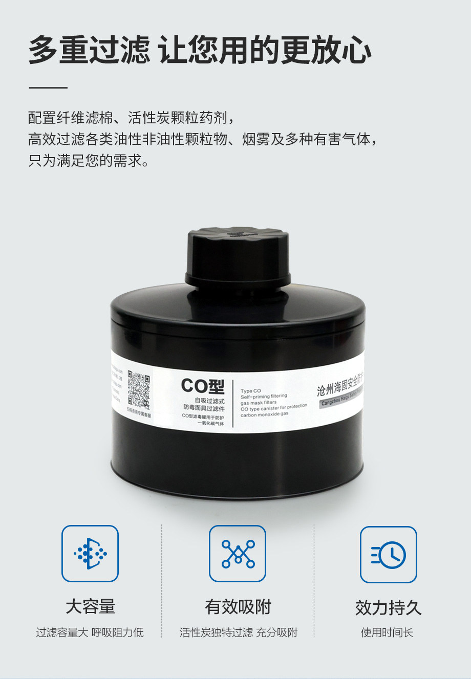 產(chǎn)品規(guī)格:寶藍(lán)灰硅膠/ABS濾毒罐