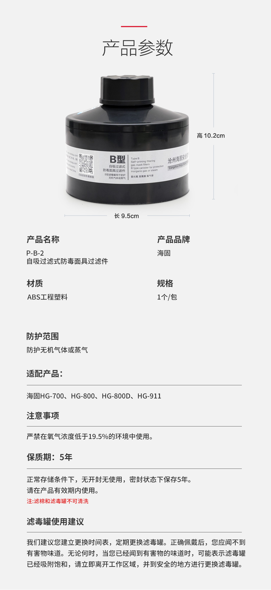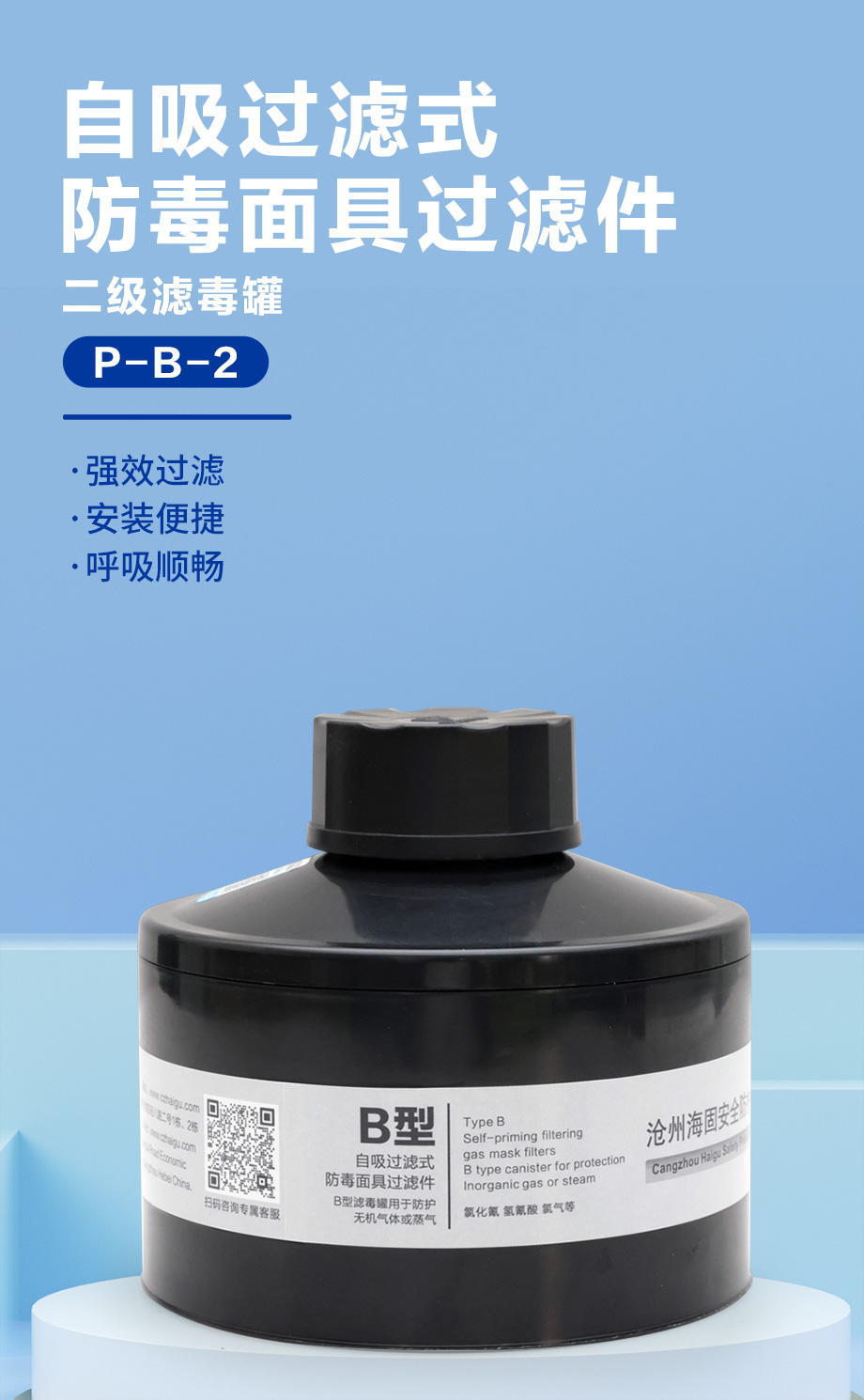 海固P-B-2濾毒罐 無機(jī)氣體 氯化氫、氫氰酸、氯氣 綜合防護(hù)