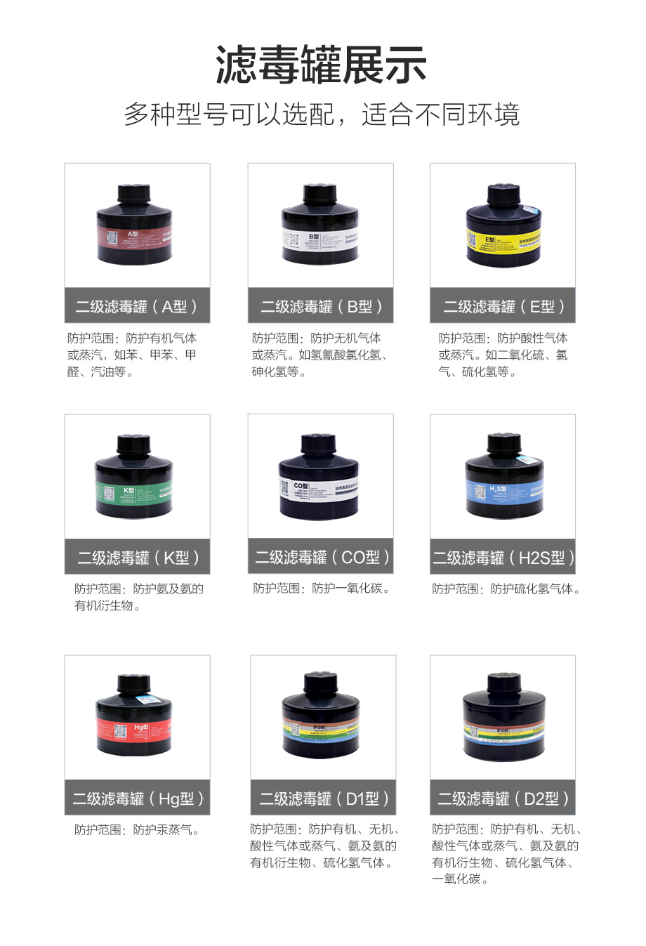 防護(hù)范圍:主要防護(hù)無機(jī)氣體或蒸汽