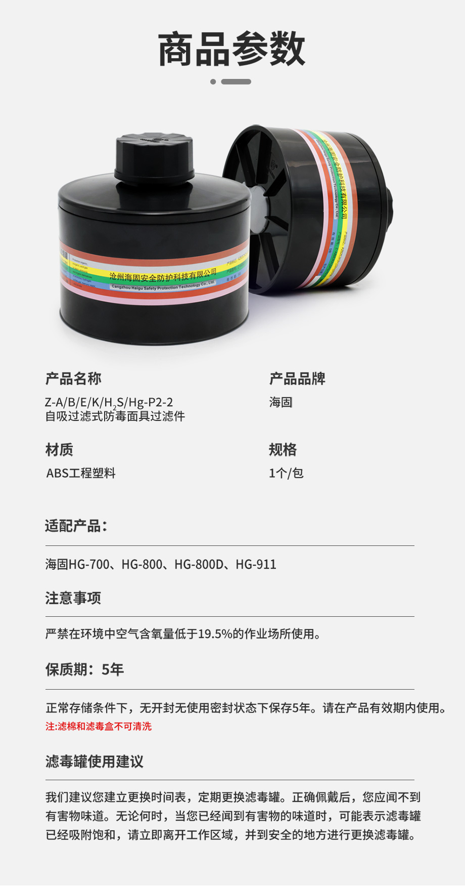 海固Z-A/B/E/K/H2S/Hg-P2-2/P3-2綜合濾毒濾煙罐