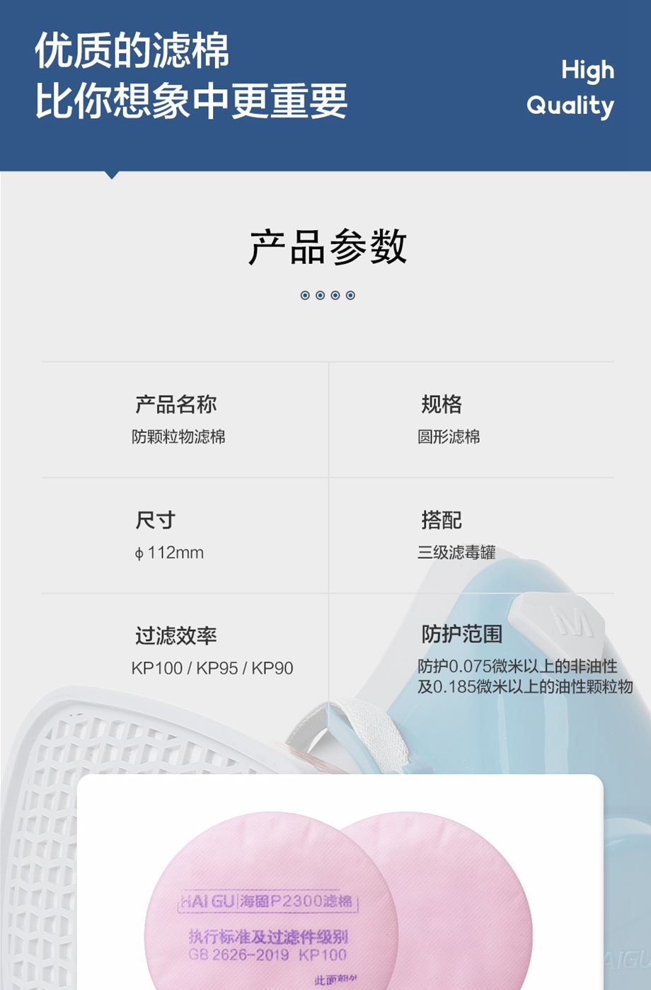 海固2系列3級(jí)KP圓形濾棉 KP100/KP95/KP90油性及非油性顆粒物濾棉
