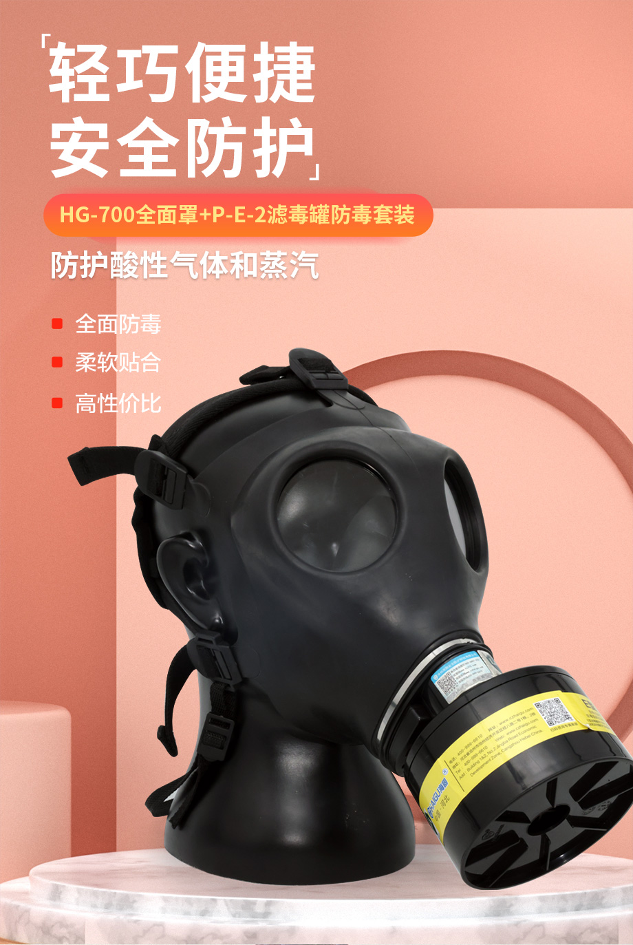 海固700全面罩+HG-ABS/P-E-2濾毒罐 酸性氣體專用