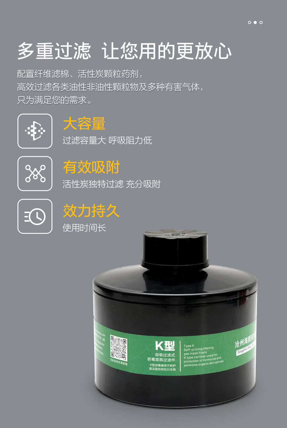 海固700全面罩+P-K-3濾毒罐 氨氣防護(hù)