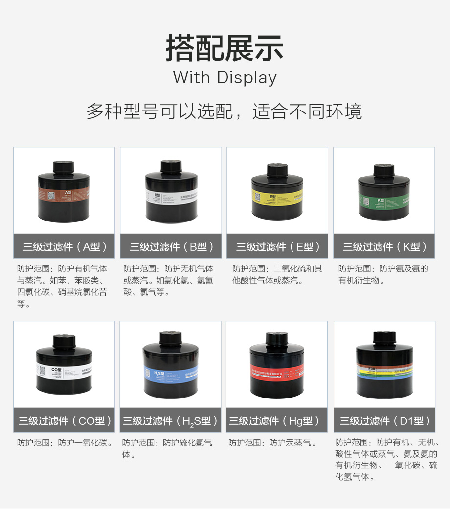 海固700全面罩+D-A/B/E/K/H2S-3濾毒罐 綜合防毒氣