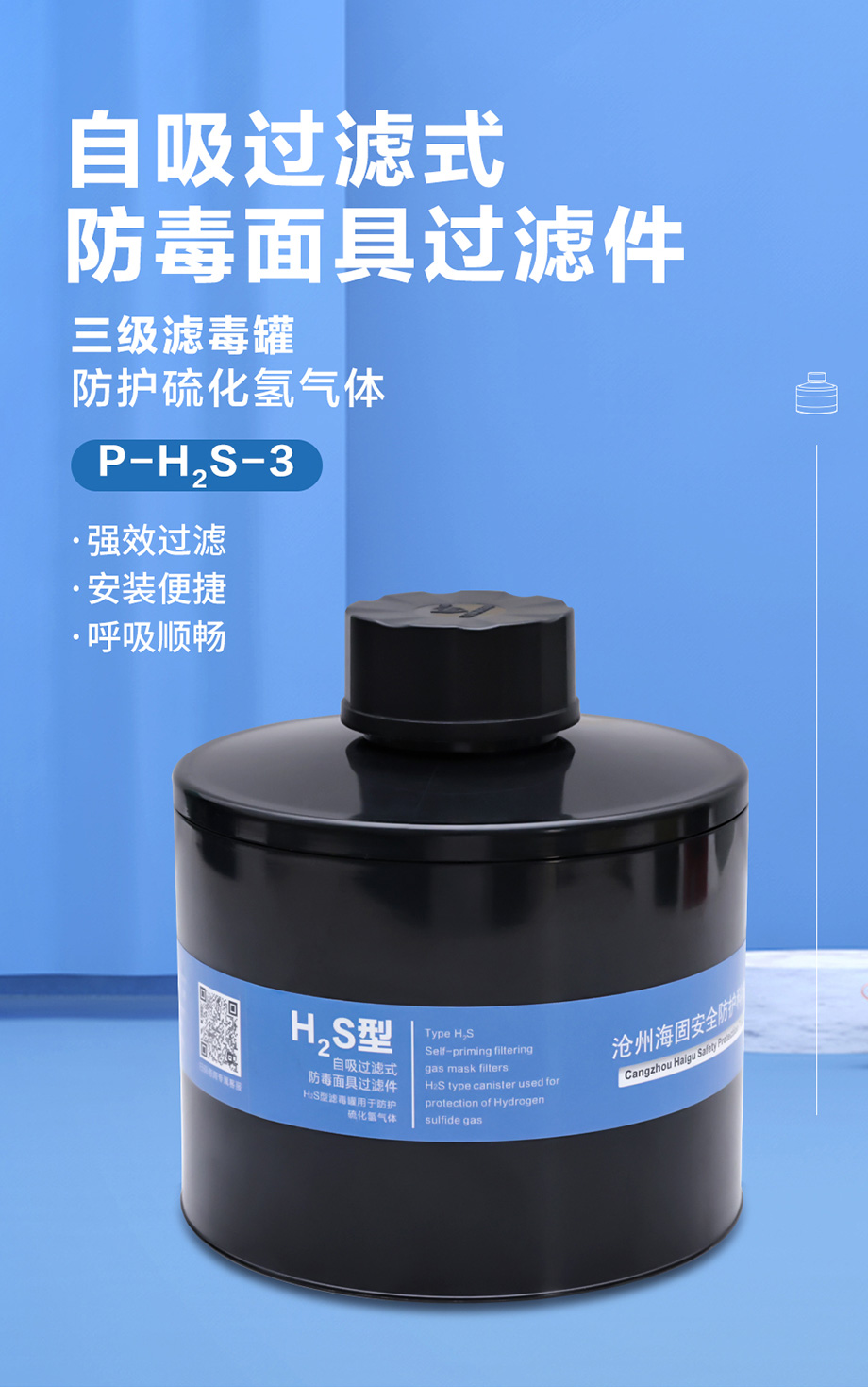 海固P-H2S-3濾毒罐 防護(hù)硫化氫氣體三級(jí)濾毒罐