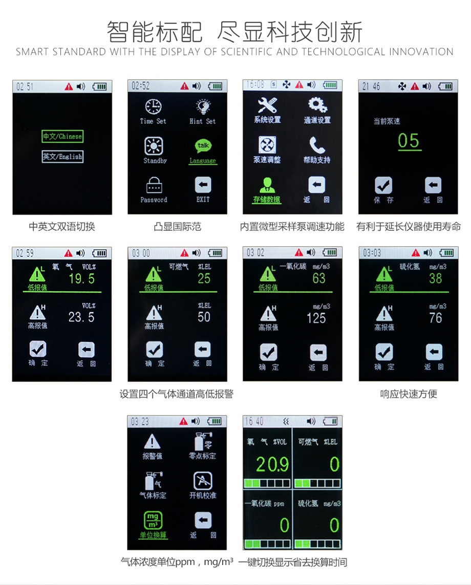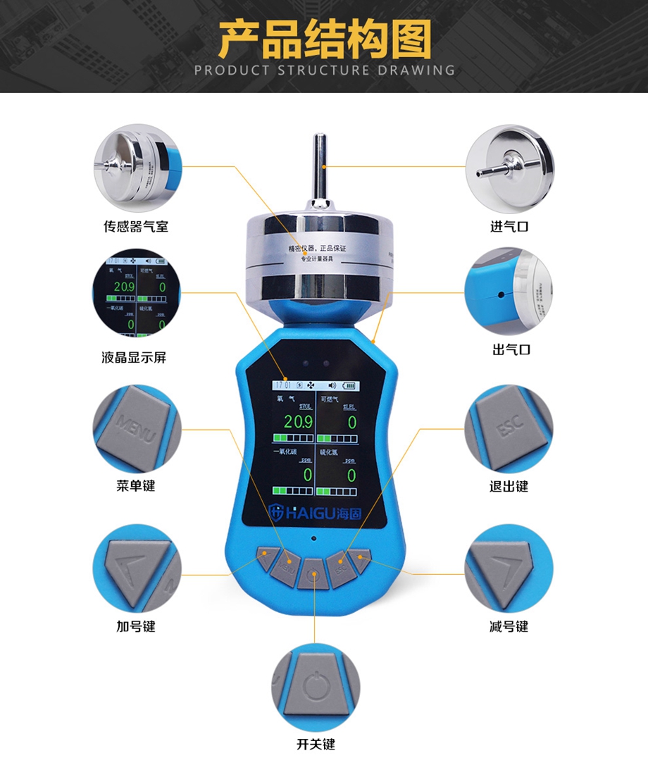 海固HG-BX-F4彩屏泵吸式四合一氣體檢測(cè)儀