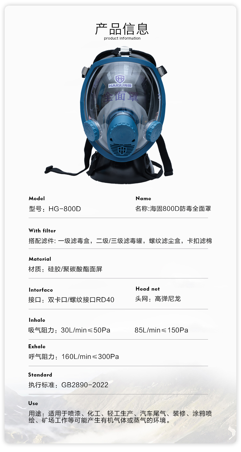 海固800D全面罩+HG-ABS/P-A-3濾毒罐 甲醛 醇類防護(hù)套裝
