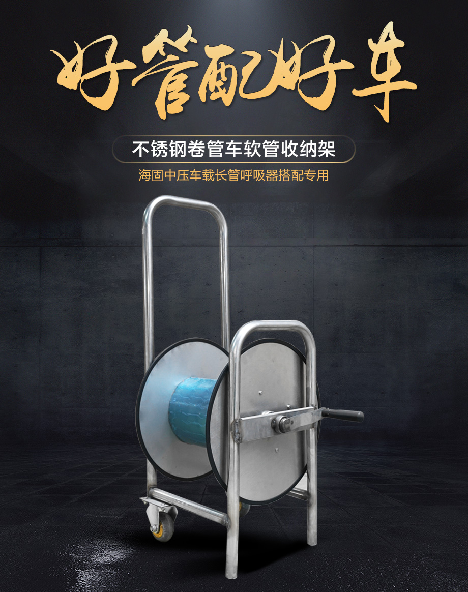 海固不銹鋼卷管車軟管收納架 中壓車載長管呼吸器搭配使用