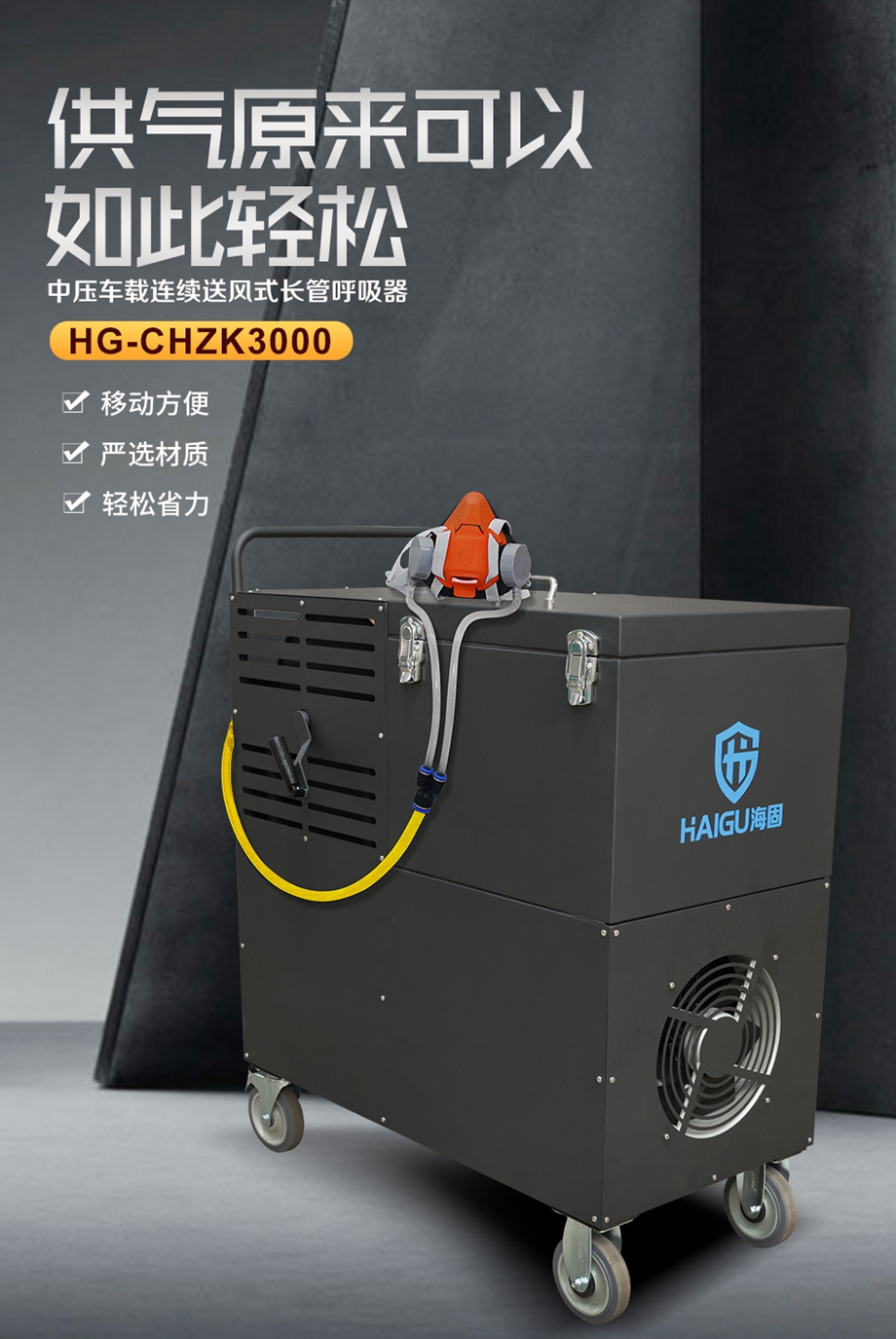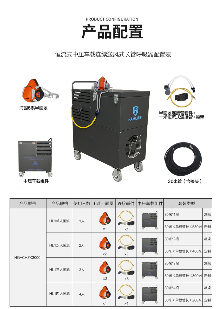 海固HG-CHZK3000搭配半面罩中壓車載連續(xù)送風(fēng)式長管呼吸