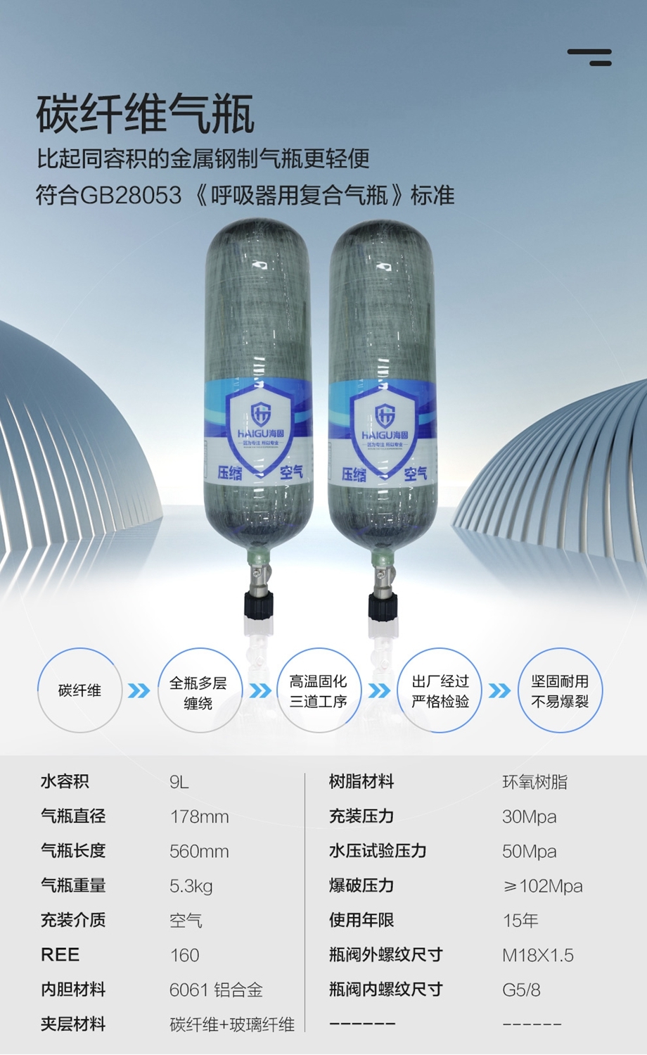 海固RHZKF9C/30(快充款) 正壓快充式空氣呼吸器 快速充氣 碳纖維復(fù)合氣瓶